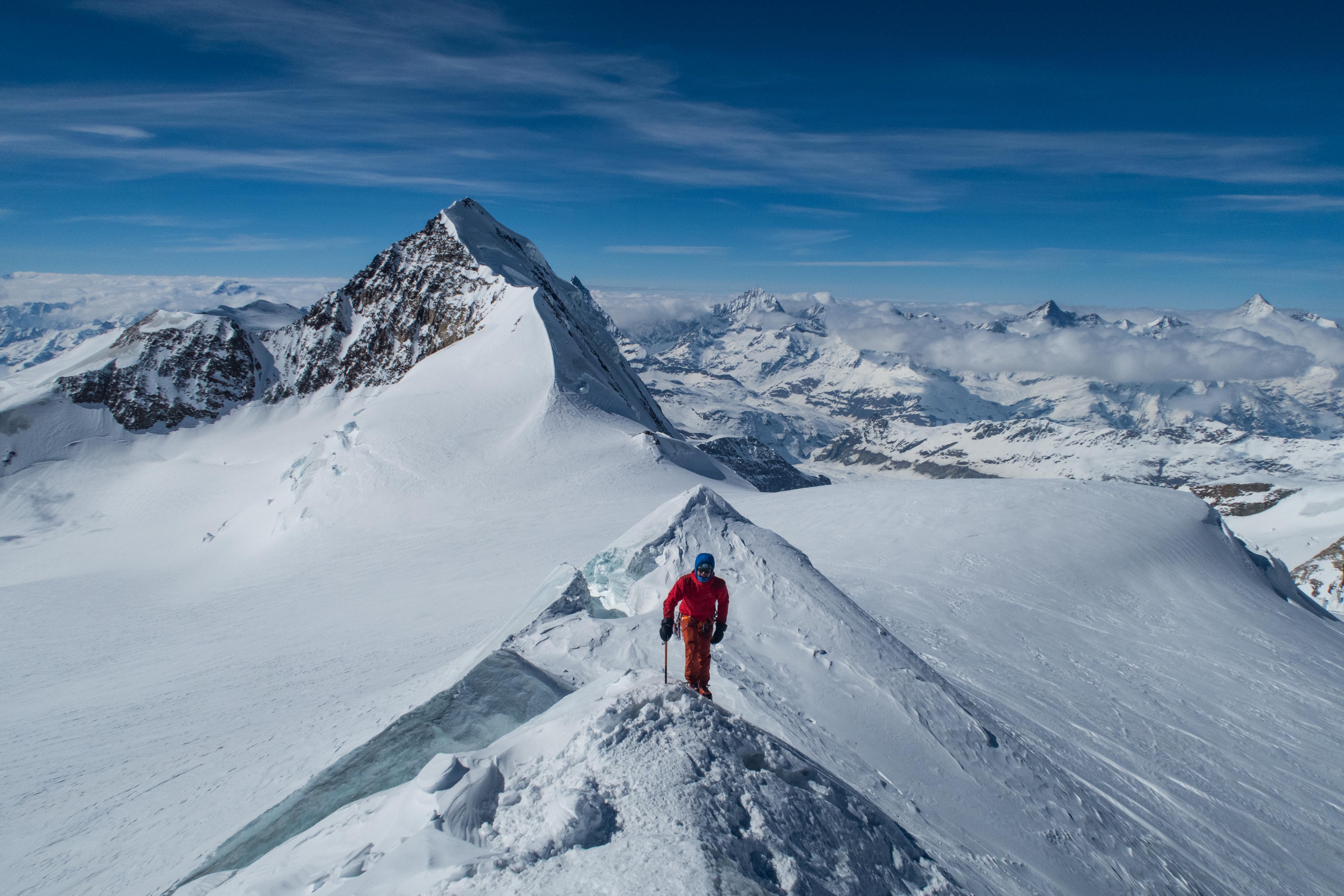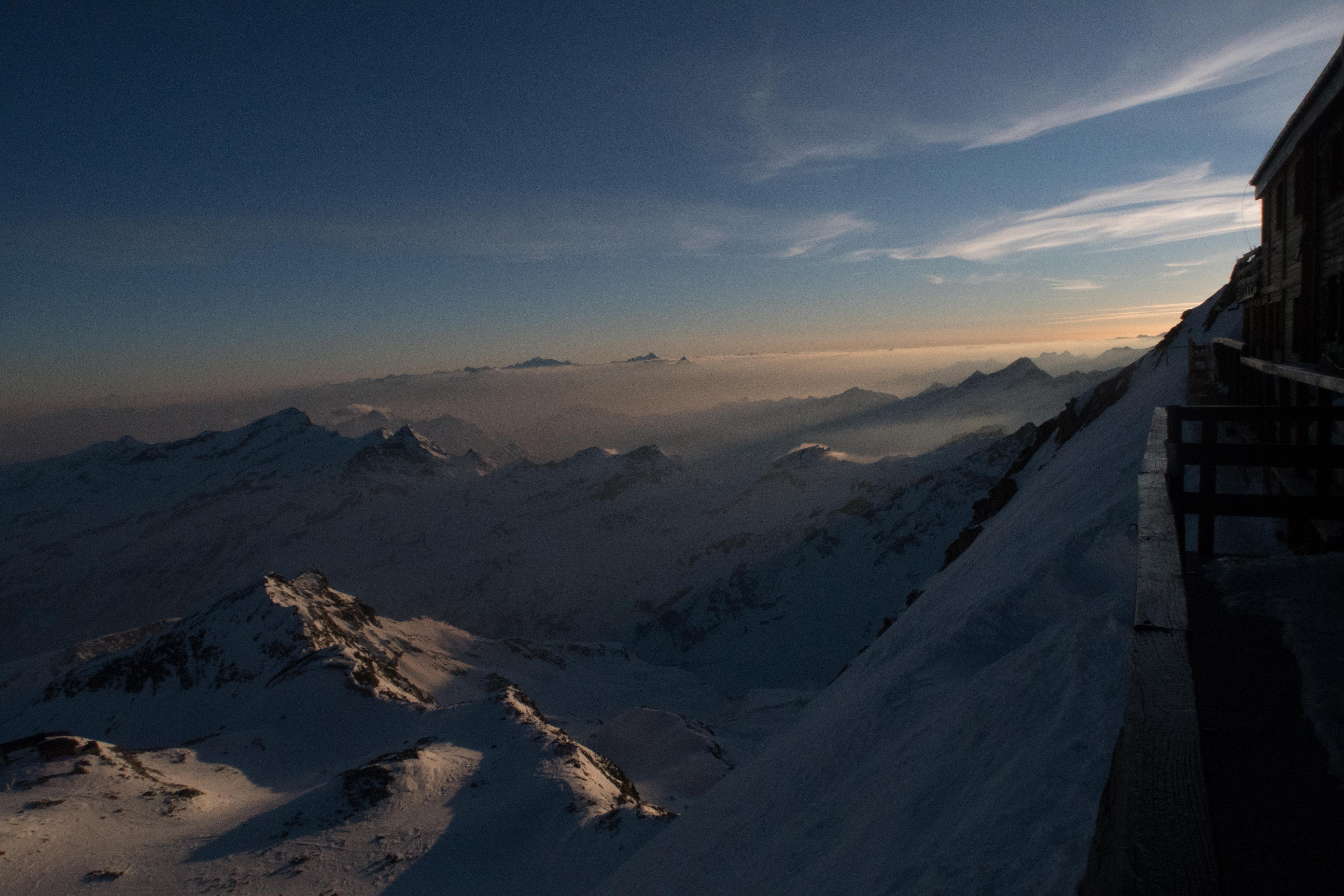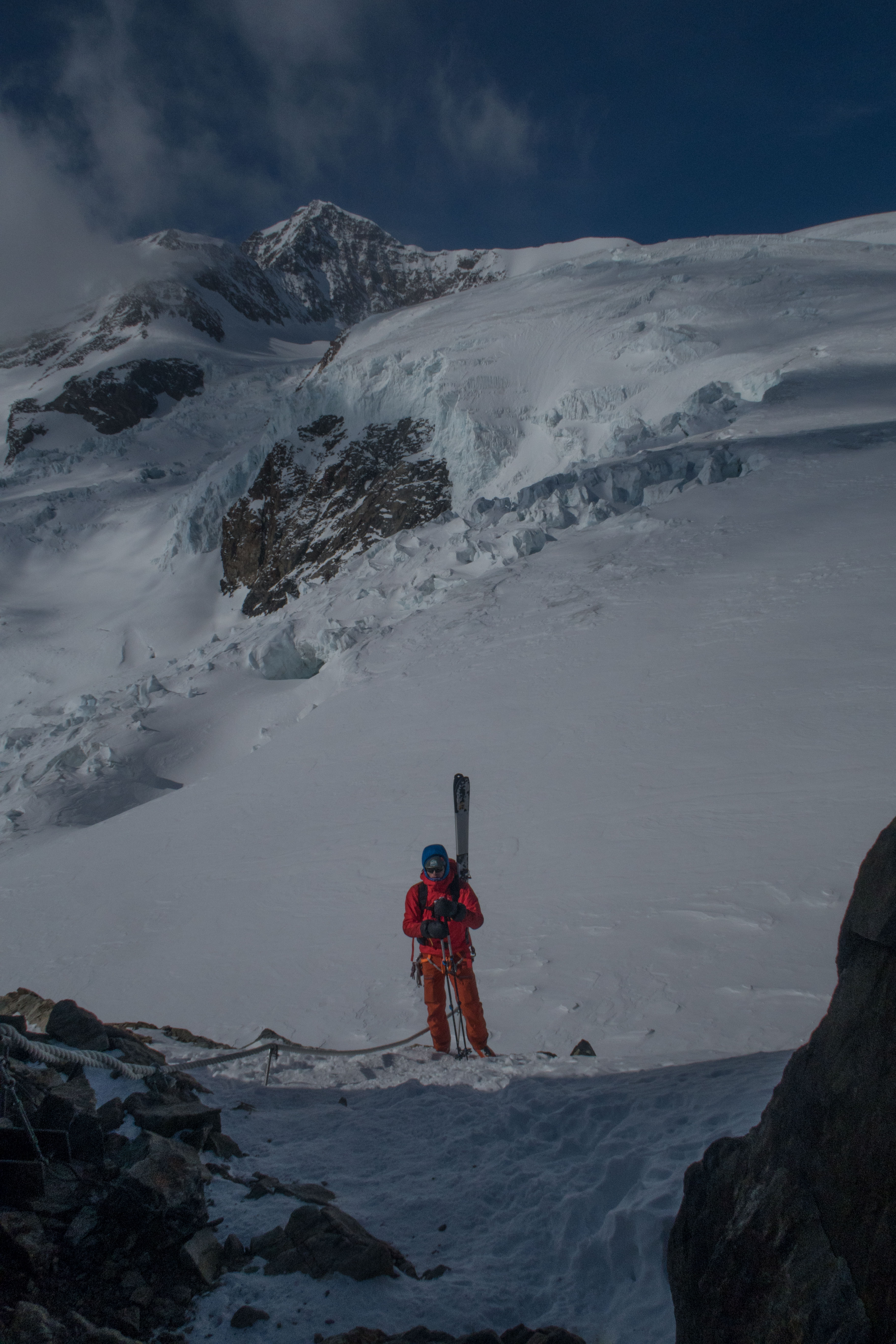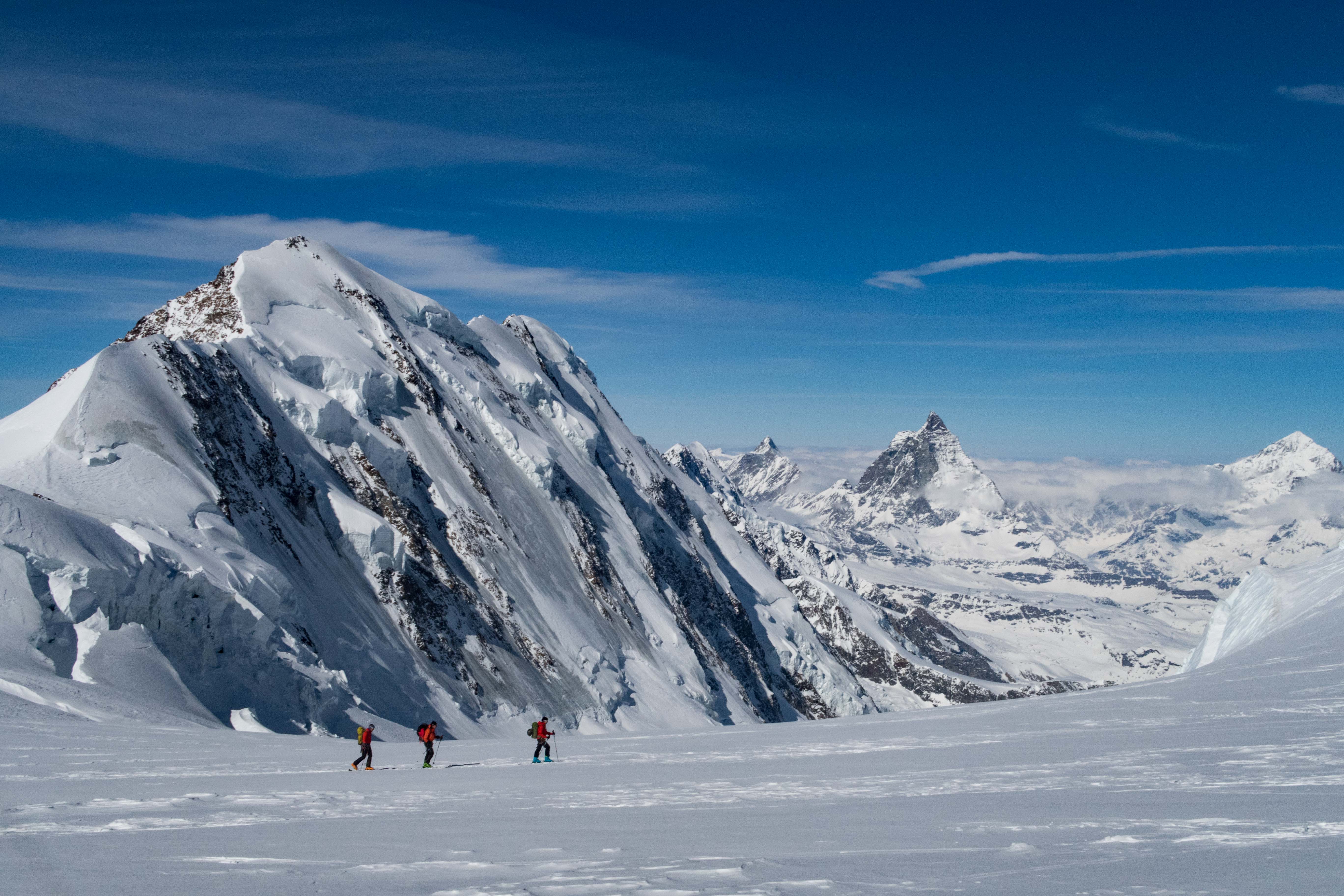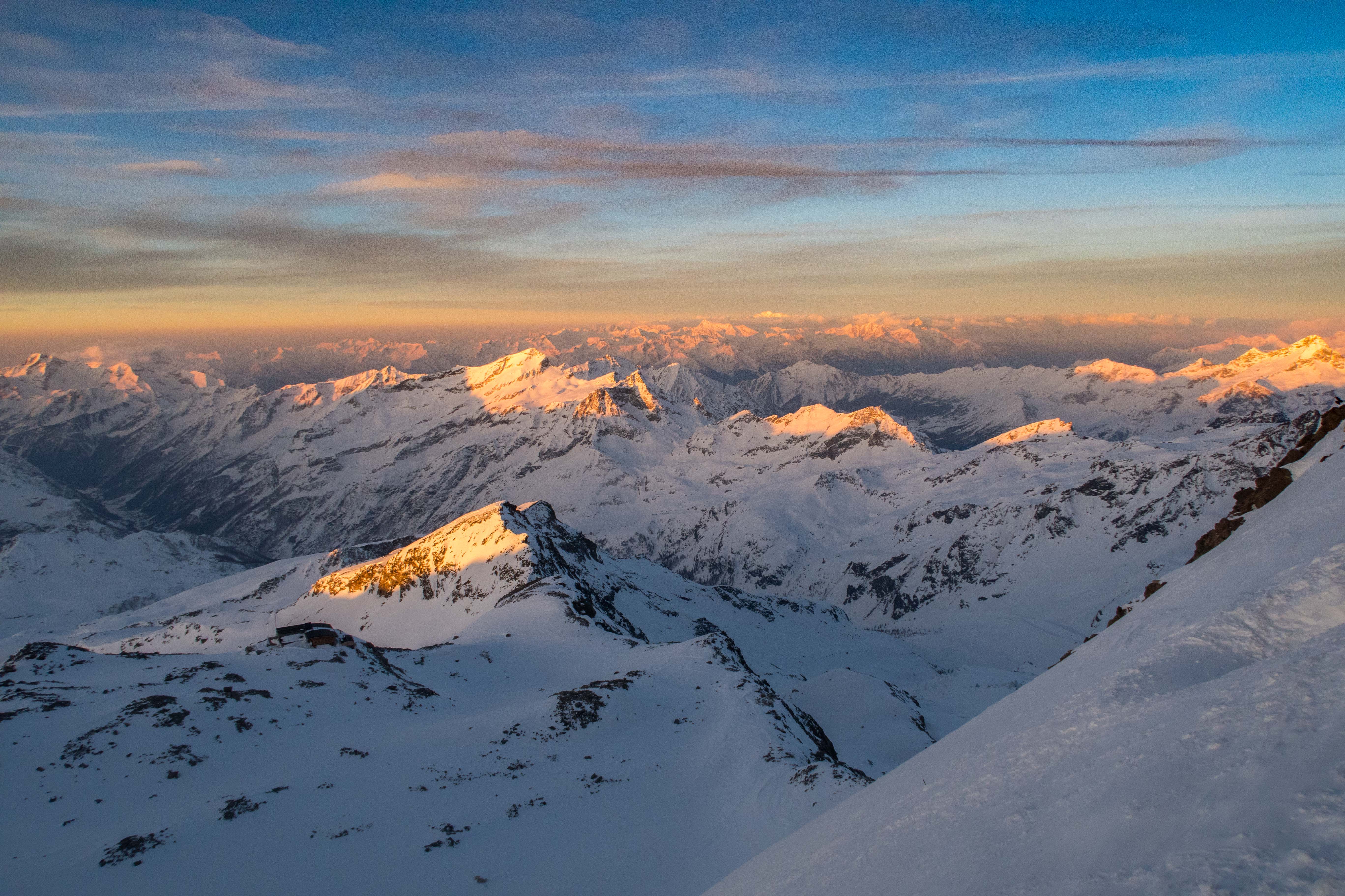 mit 2 Freunden für 3 Tage auf Skihochtouren im Monte Rosa Gebiet mit den Gipfeln: Vincentpyramide (4.215m), Balmenhorn (4.167m), Ludwigshöhe (4.341m) und zur höchstgelegenen Hütte der Alpen zur Margheritahütte auf dem Gipfel der Signalkuppe auf 4.554m