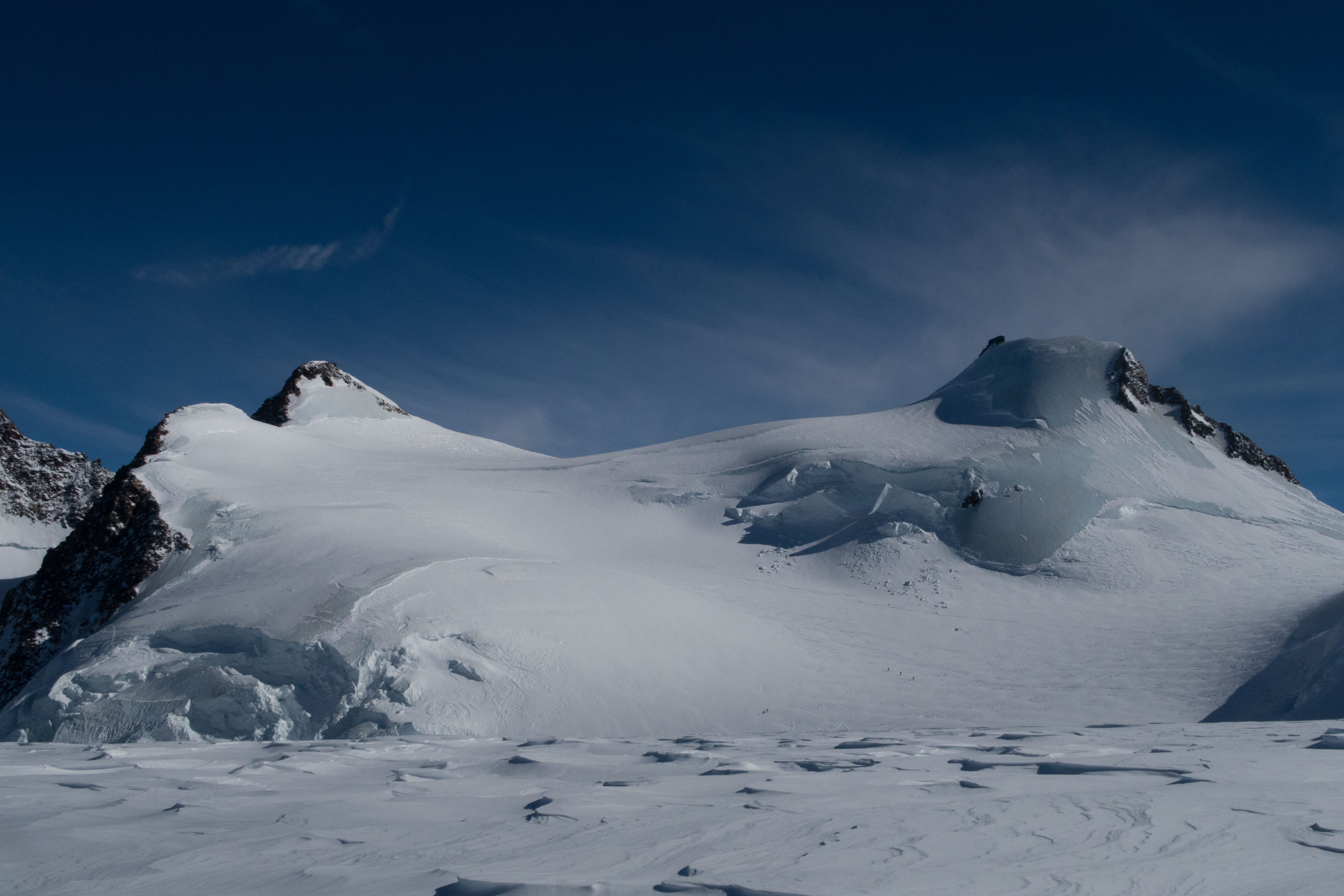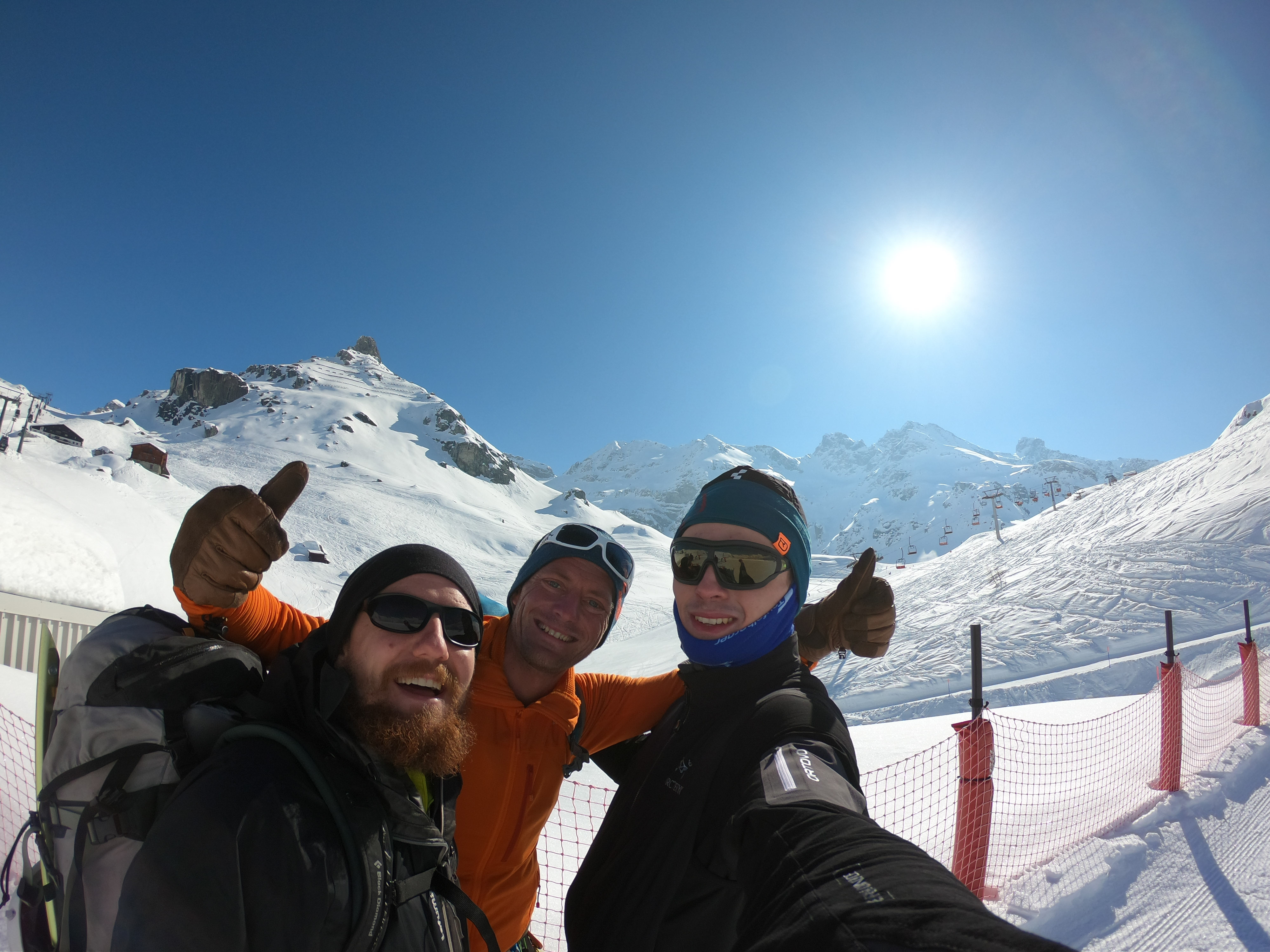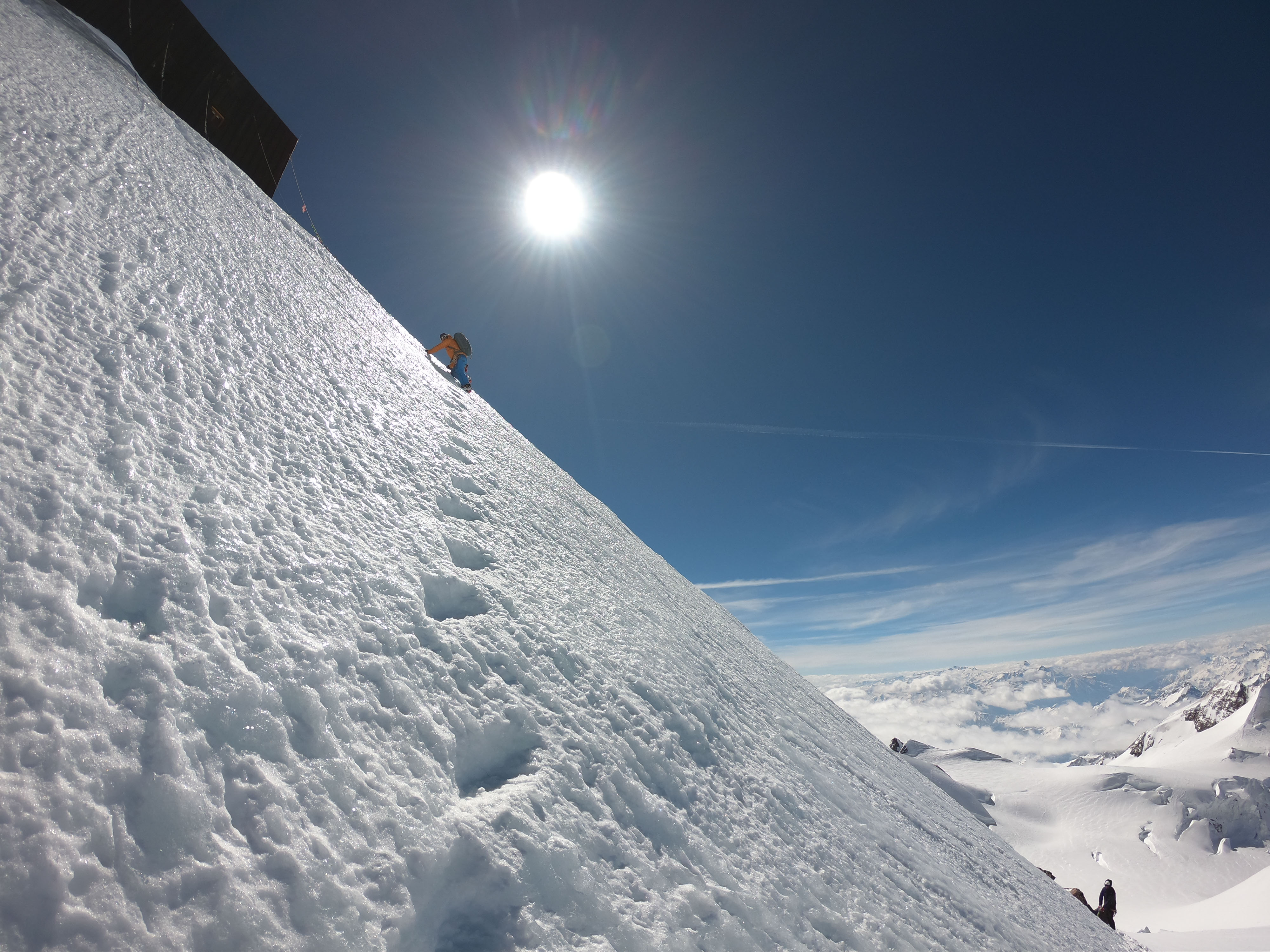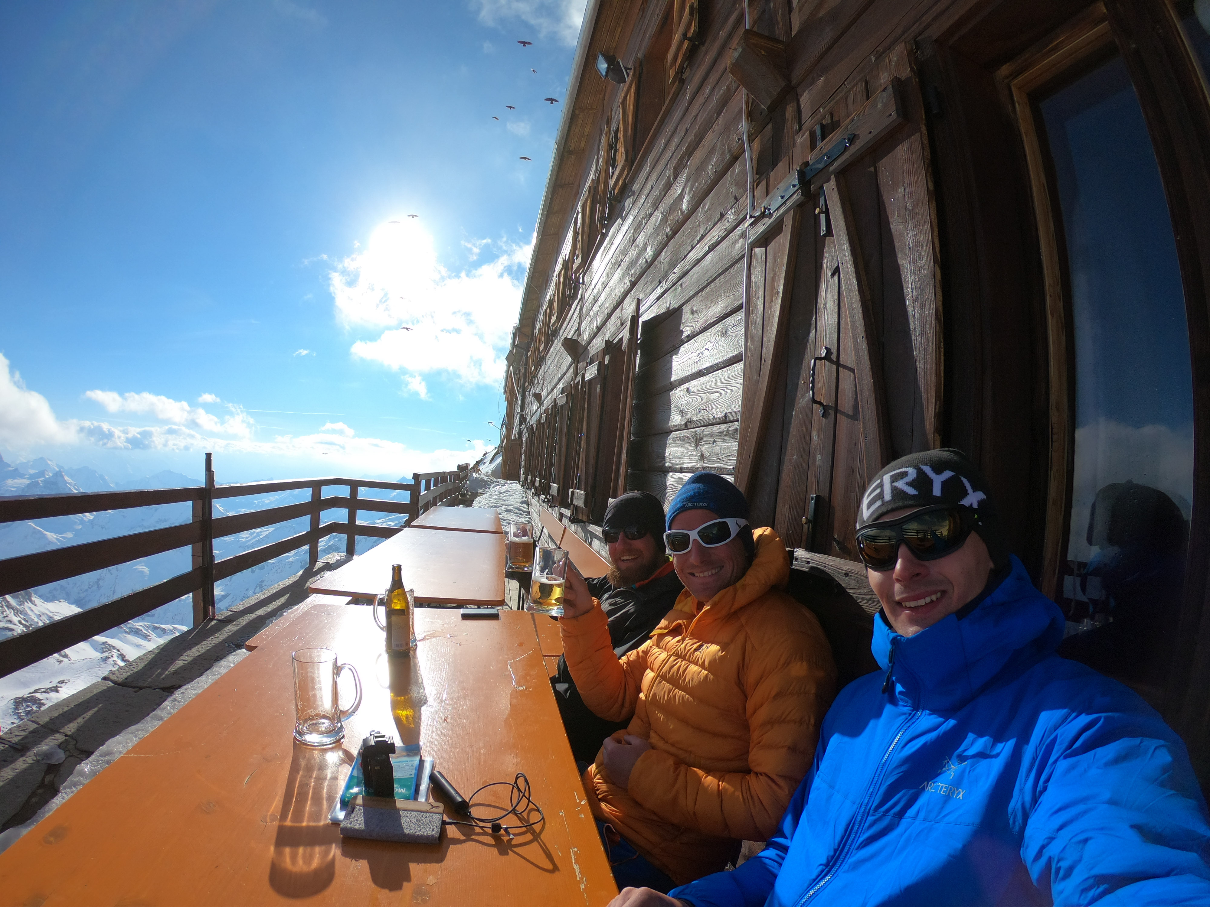 mit 2 Freunden für 3 Tage auf Skihochtouren im Monte Rosa Gebiet mit den Gipfeln: Vincentpyramide (4.215m), Balmenhorn (4.167m), Ludwigshöhe (4.341m) und zur höchstgelegenen Hütte der Alpen zur Margheritahütte auf dem Gipfel der Signalkuppe auf 4.554m