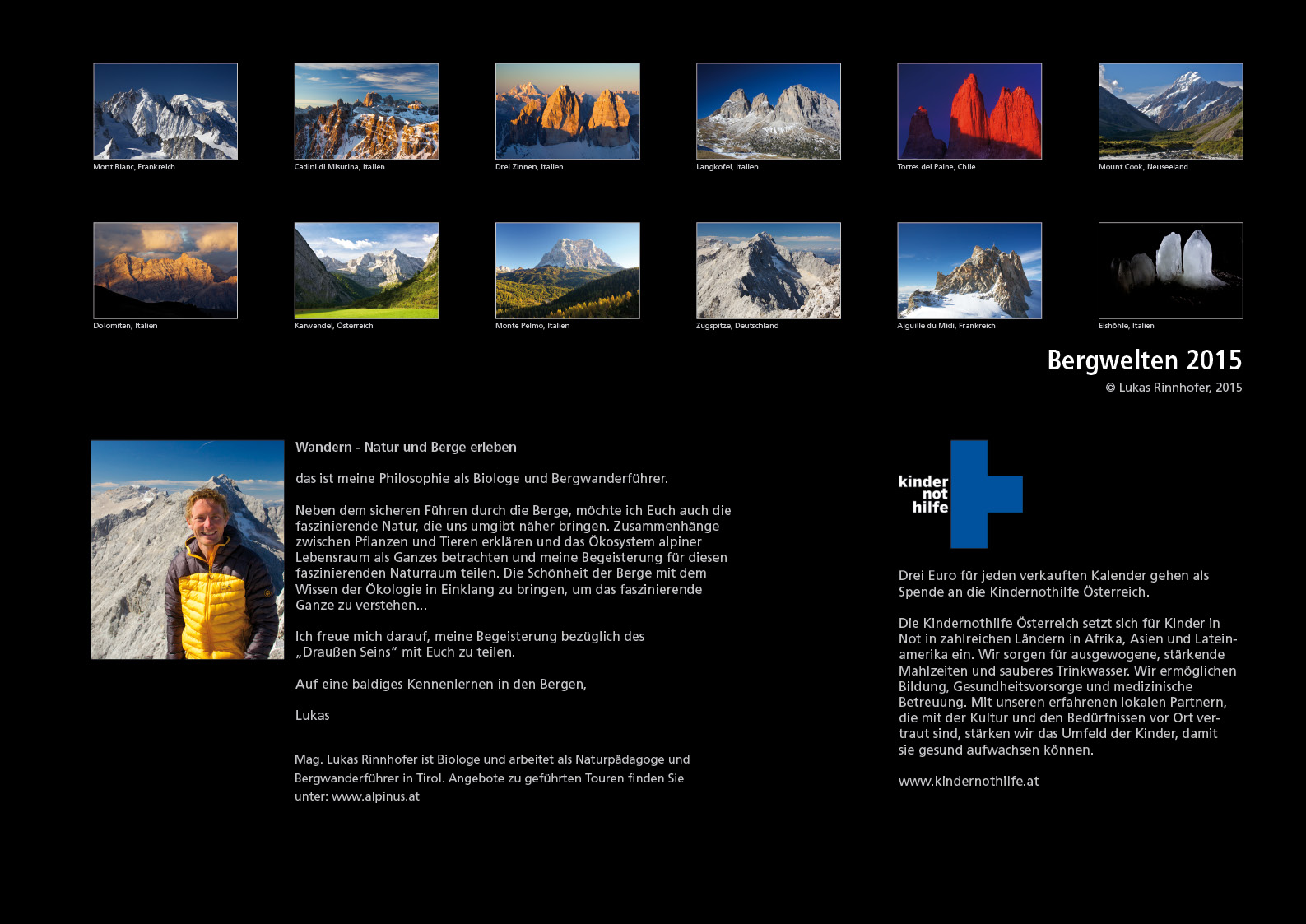 Kalender im DIN A3 Format zum bestellen. 15,- / Stk. + 1,50 Versandkosten nach Österreich und Deutschland. Drei Euro für jeden bestellten Kalender gehen als Spende an die Kindernothilfe Österreich. Bestellung per Email bis zum 30.11. um eine Lieferung vor Weihnachten zu garantieren: lukas@rinnhofer.cc